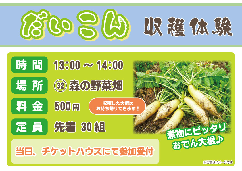 11月1日(土)は大根( おでん大根 )の収穫体験を開催いたします。